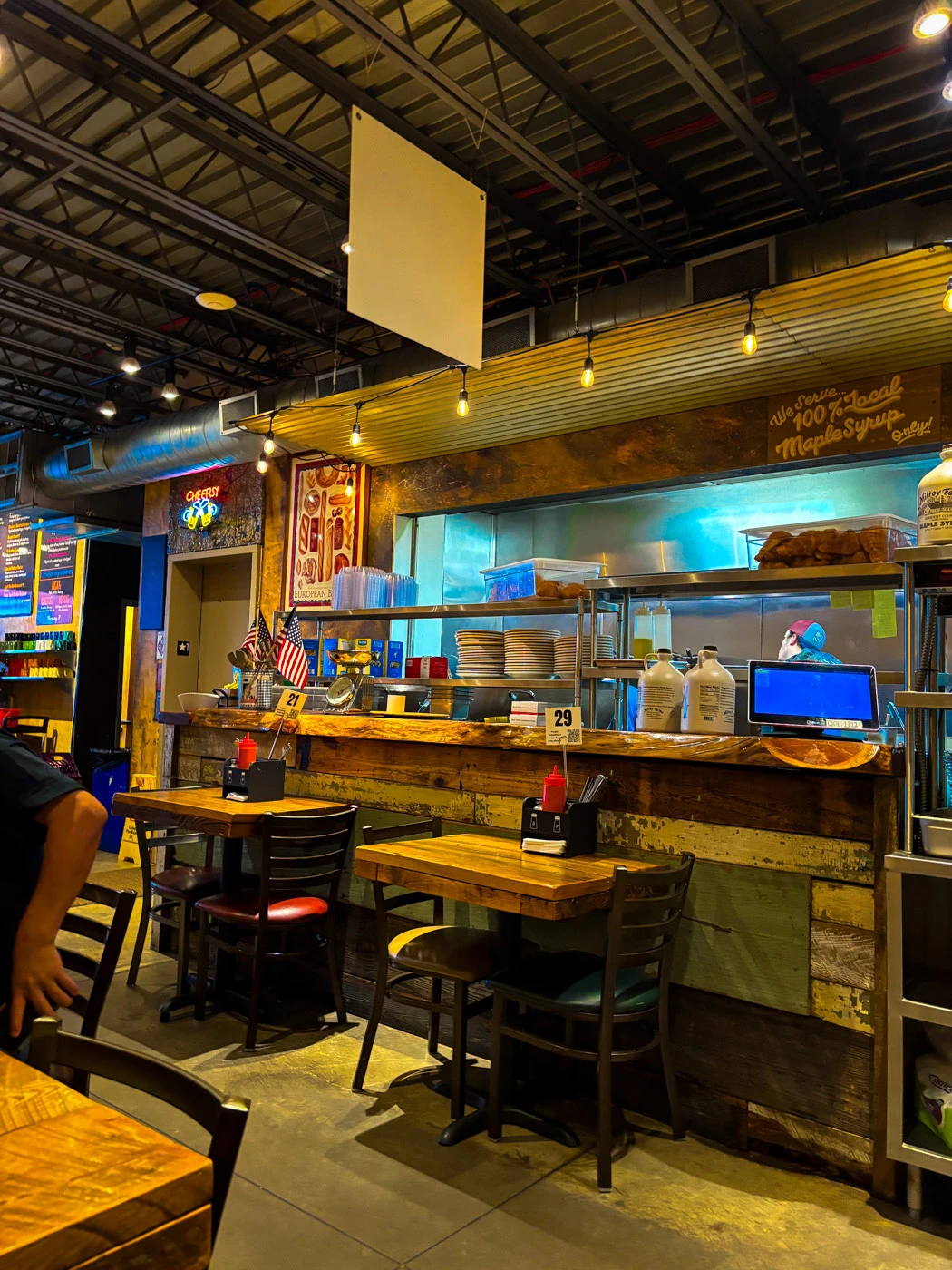 The cafe's interior reflects the vibrant and artistic spirit of the Strip District, with a cozy and inviting atmosphere that makes diners feel right at home. The simple yet warm decor complements the overall dining experience, making it an ideal spot for a relaxed meal.